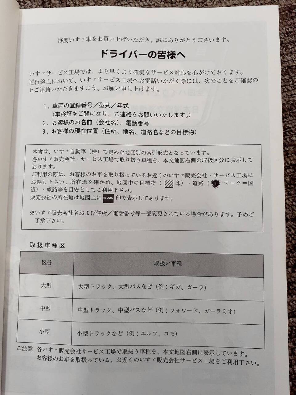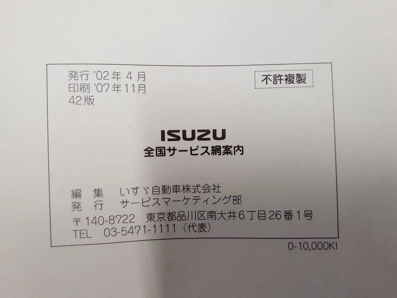 いすゞ 全国サービス網案内(中古)