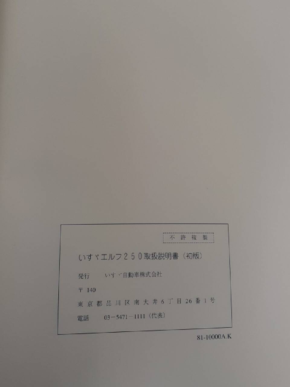 いすゞ エルフ250 取扱説明書 (中古)