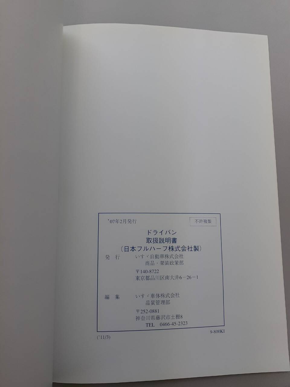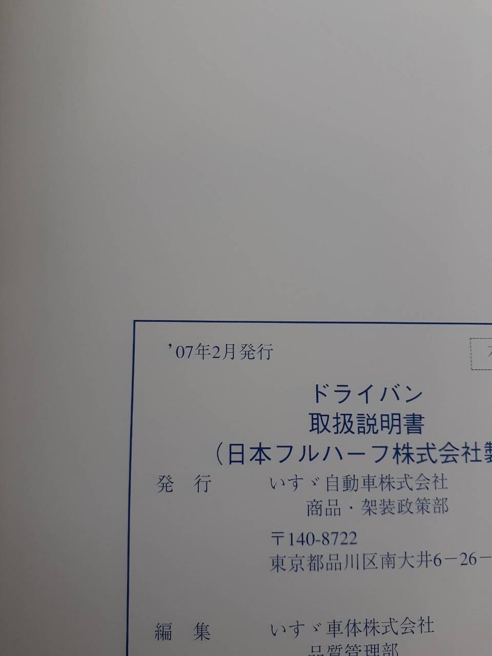 いすゞ ドライバン 取扱説明書 中古