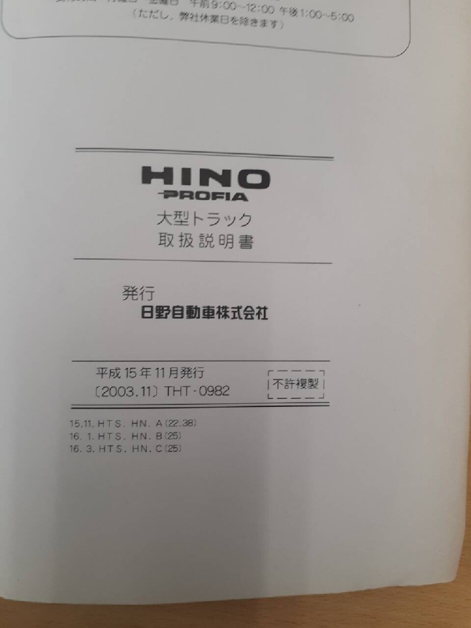 LP06-1217【兵庫県神戸市発】HINO★PROFIA★プロフィア取説★