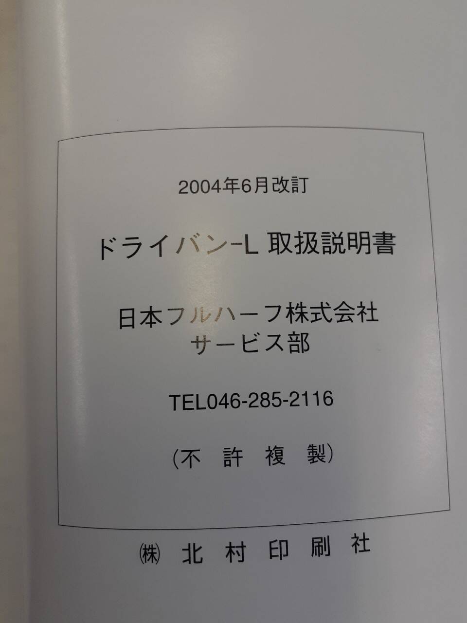 日本フルハーフ ドライバン-L 取扱説明書 中古