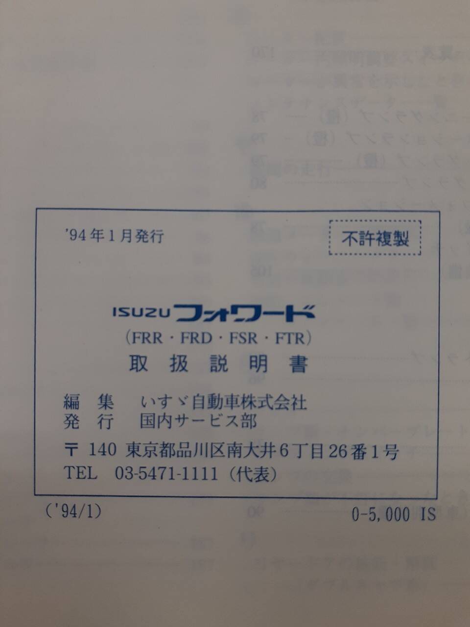 いすゞ フォワード 取扱説明書(中古)