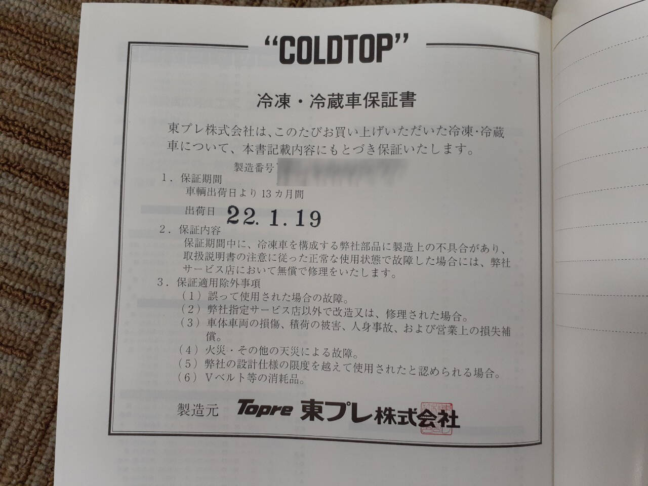Topre 冷凍・冷蔵車COLDTOP 取扱説明書 (中古)