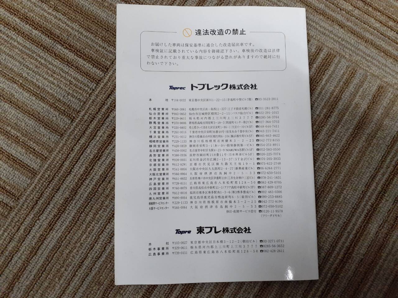 Topre 冷凍・冷蔵車COLDTOP 取扱説明書 中古