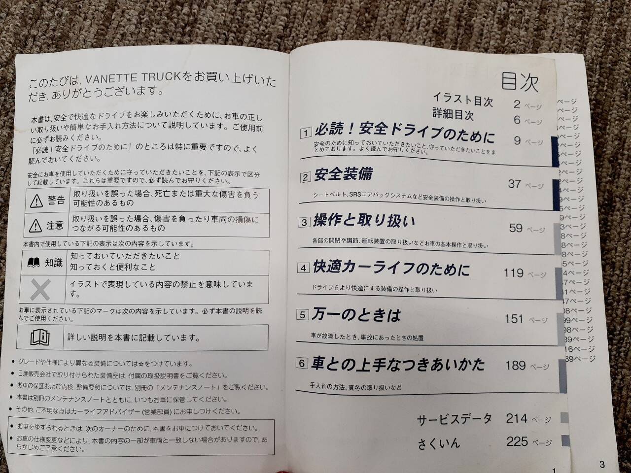 日産 バネット 取扱説明書(中古)
