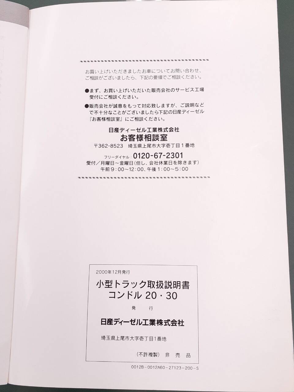 日産ディーゼル コンドル20・30取扱説明書