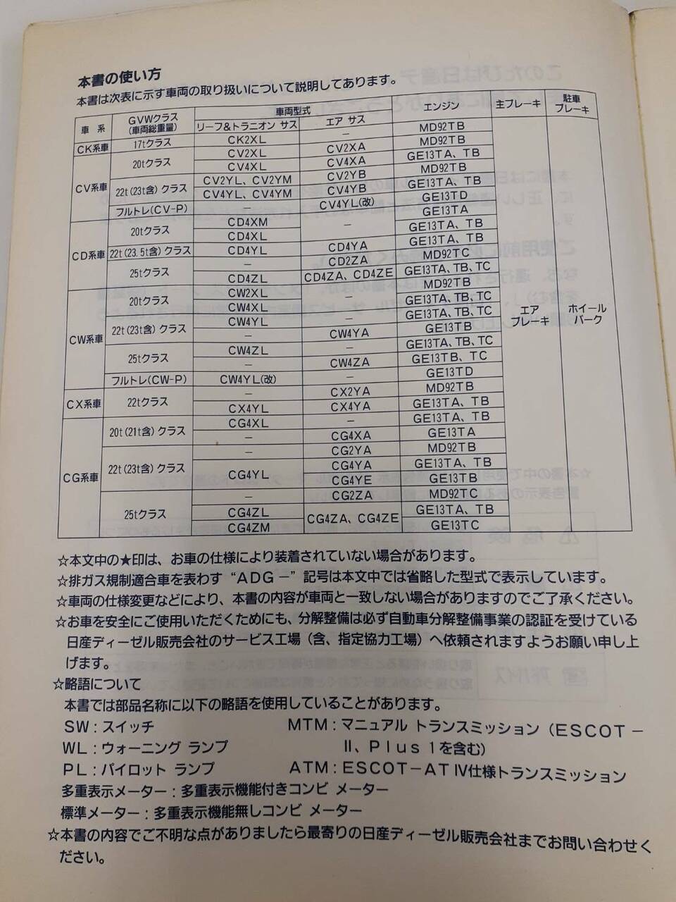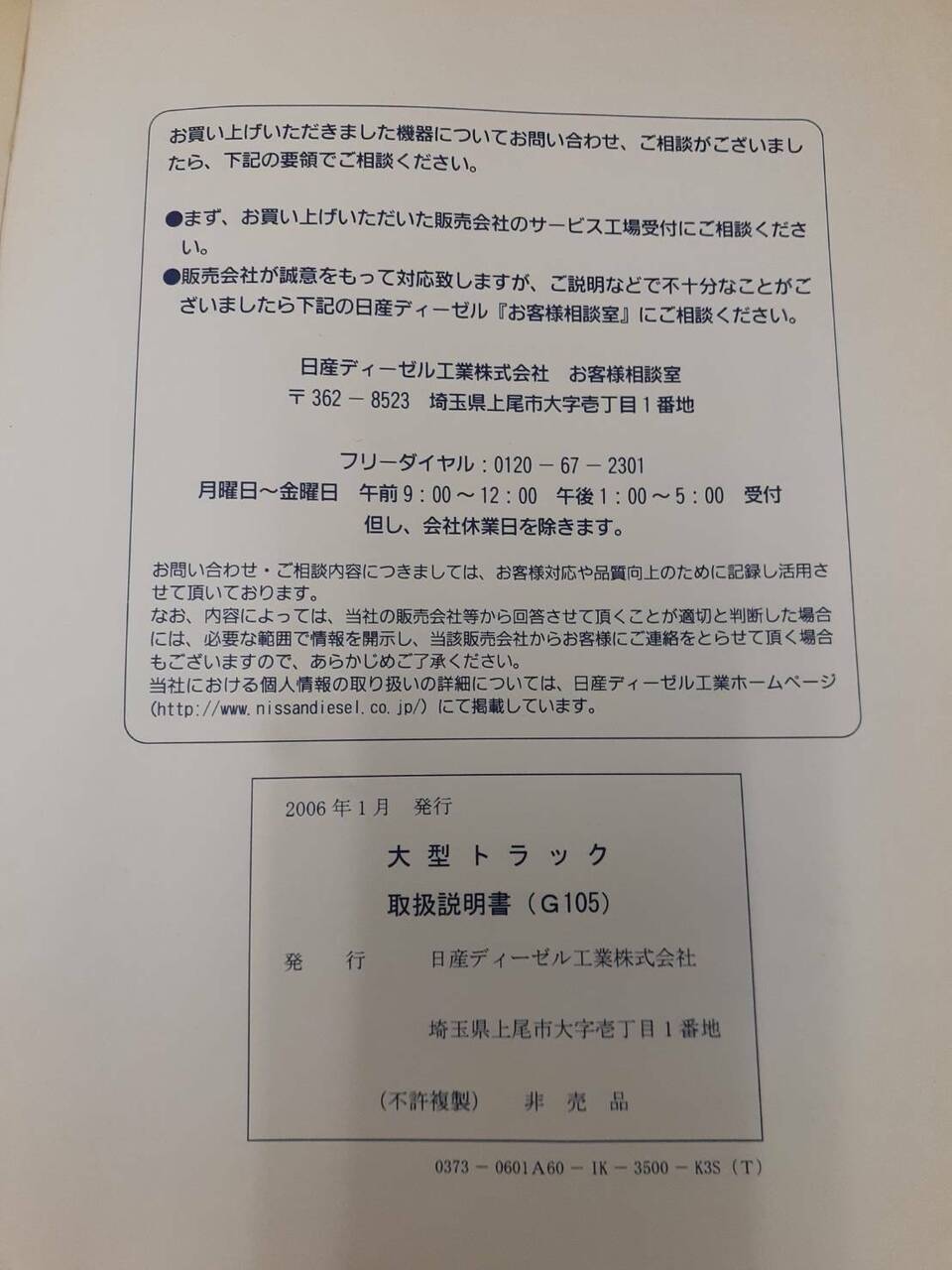 日産ディーゼル Quon 大型トラック取扱説明書(中古)