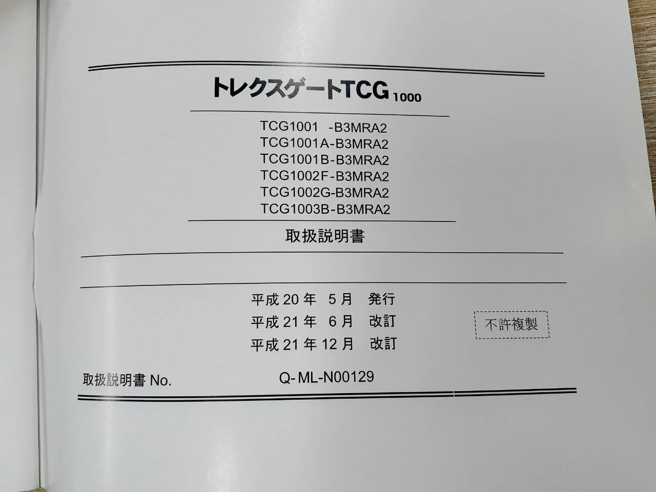 日本トレックス トリクスゲートTCG 取扱説明書(中古)