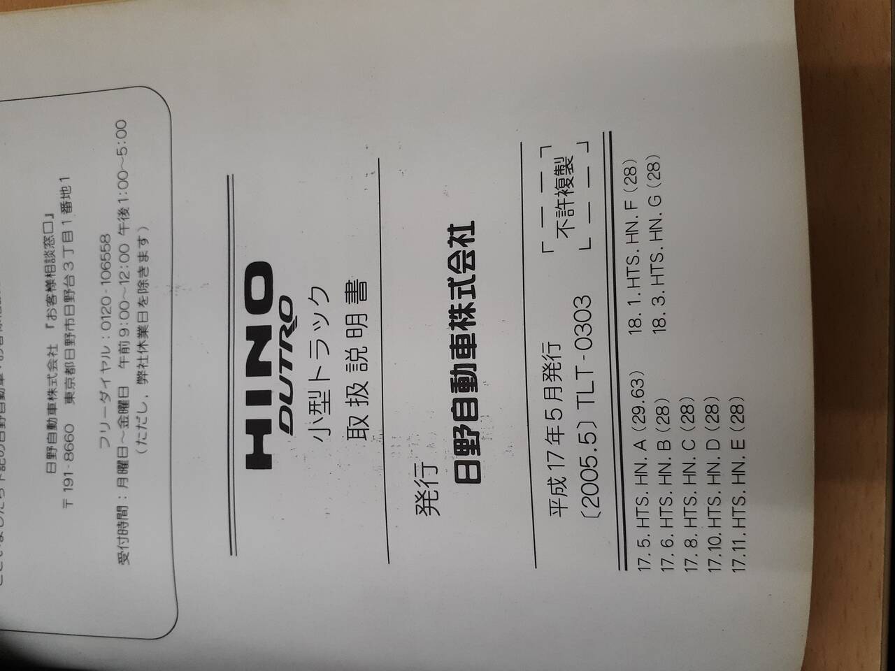 日野 デュトロ 取扱説明書(中古)
