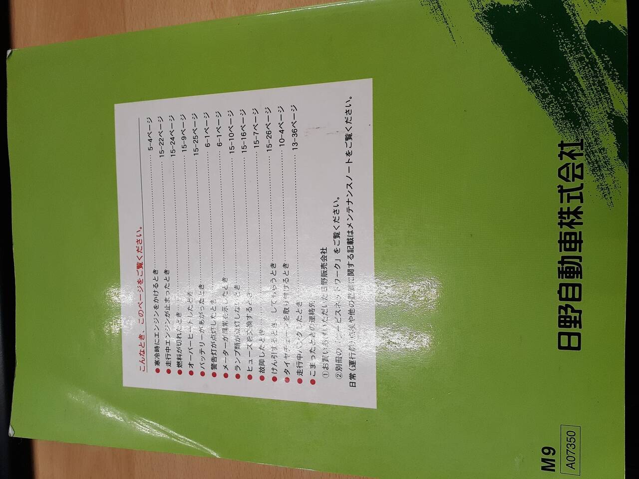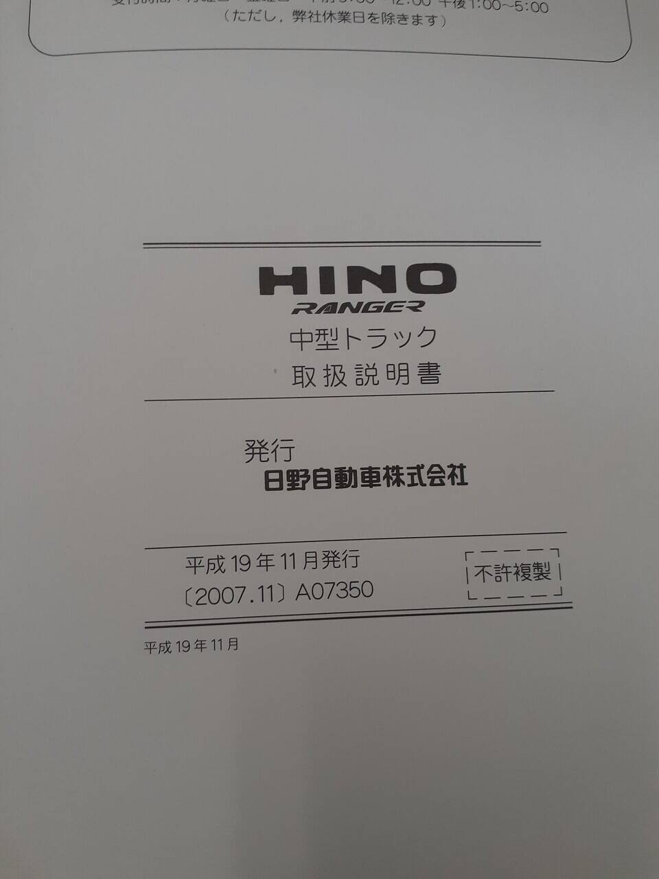日野 レンジャー 取扱説明書(中古)