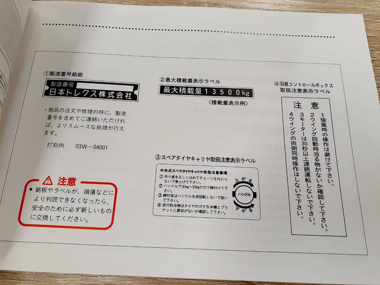日本トレクス株式会社 トラックウイング 取扱説明書(中古)