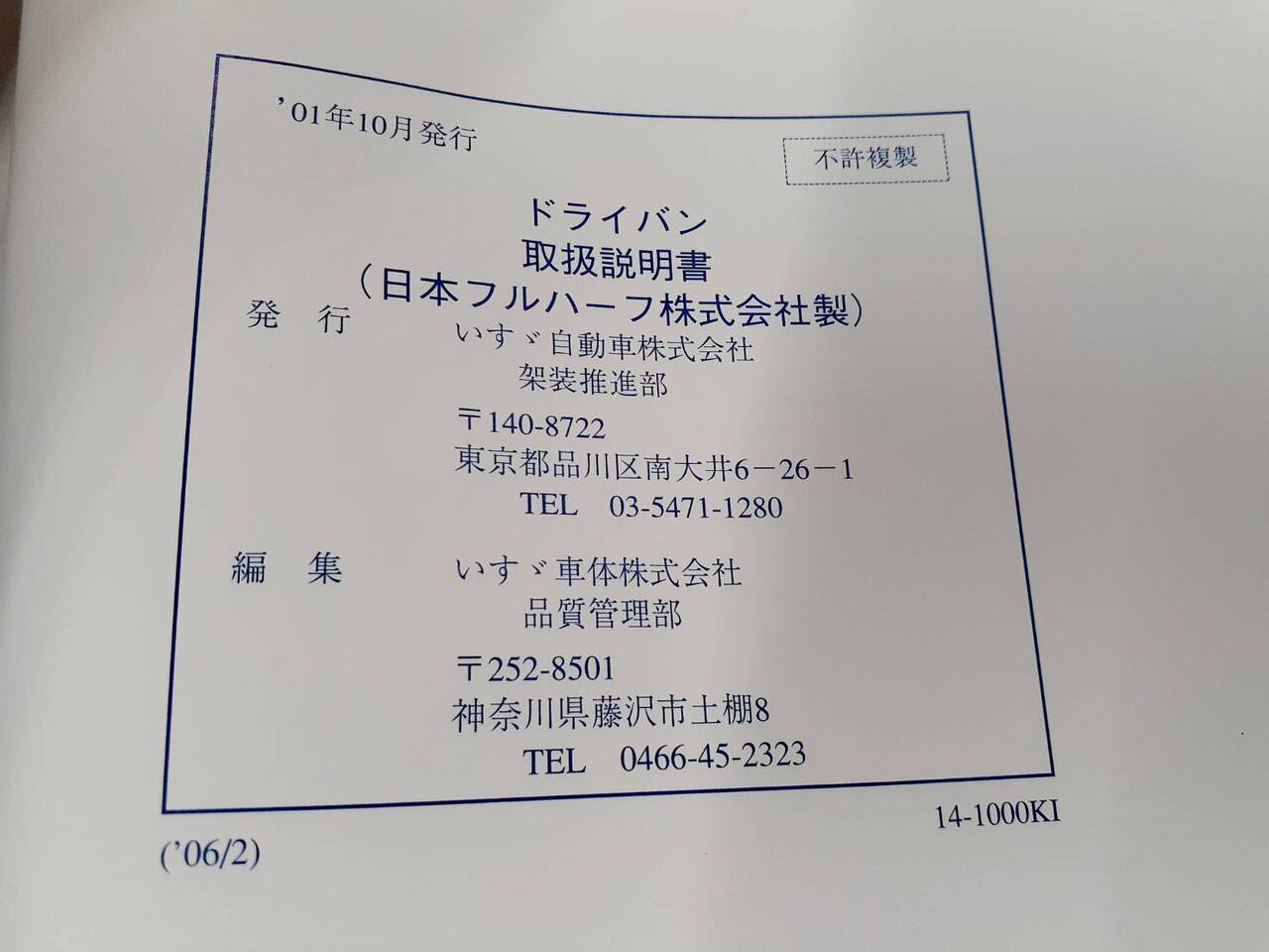 いすゞ日本フルハーフ エルフ ドライバン 取扱説明書(中古)