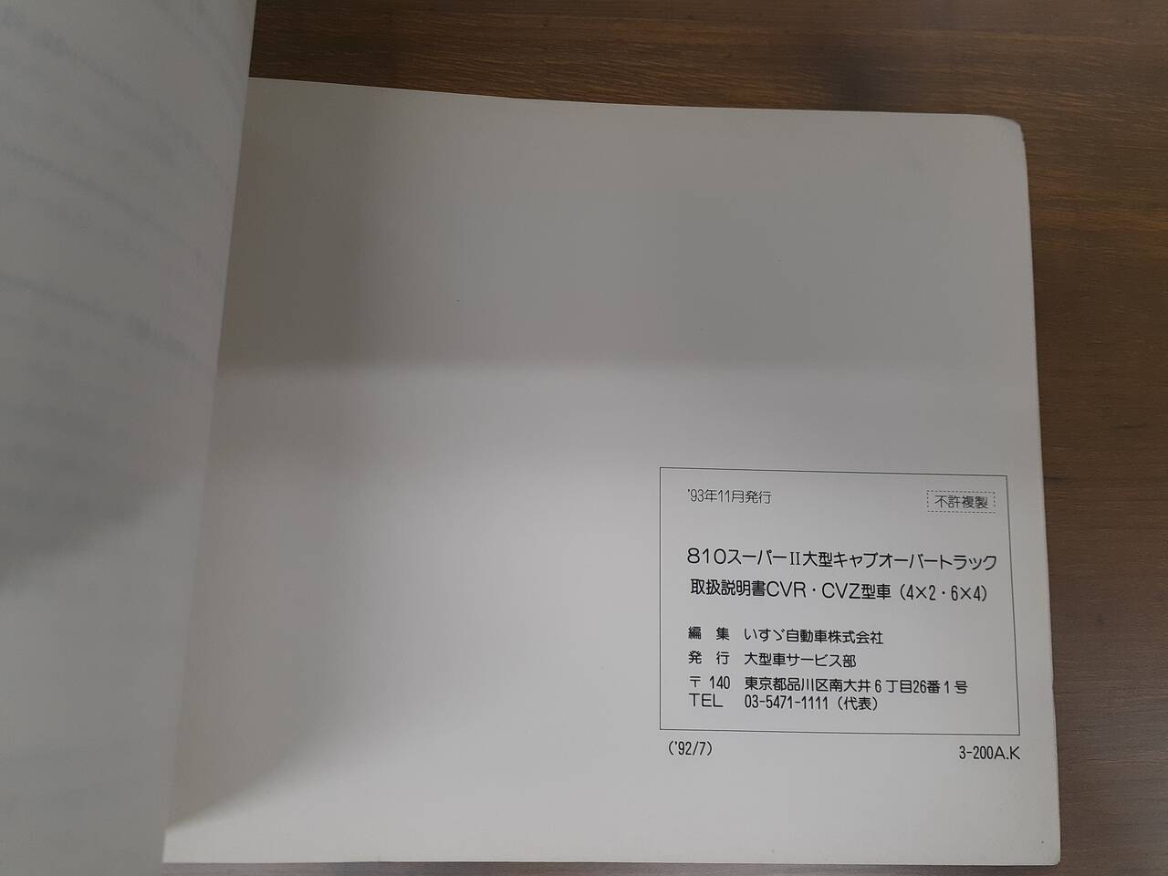 ISUZU 大型キャブオーバートラック取扱説明書(中古)