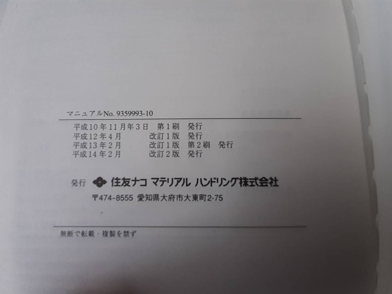 住友 フォークリフト 取扱説明書(中古)