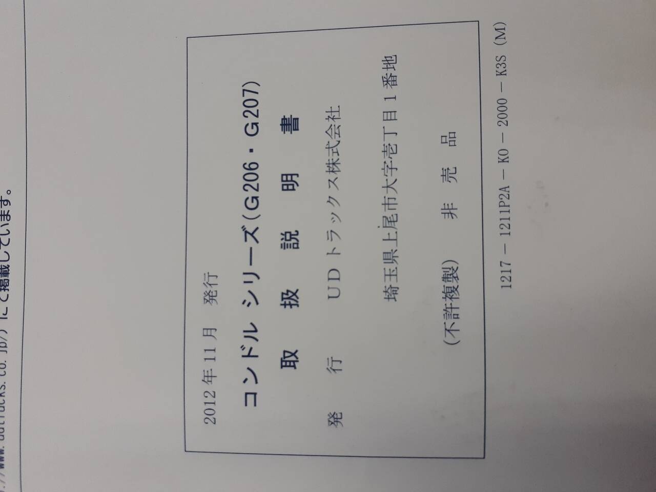 UDトラックス Condor 取扱説明書(中古)