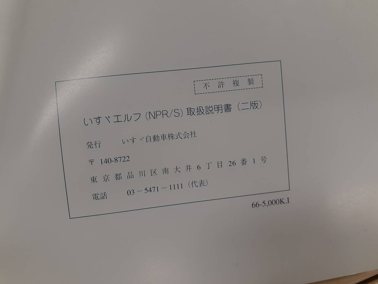 いすゞ エルフ 取扱説明書(中古)