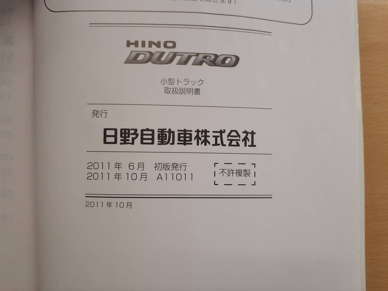 日野自動車 デュトロ取扱説明書