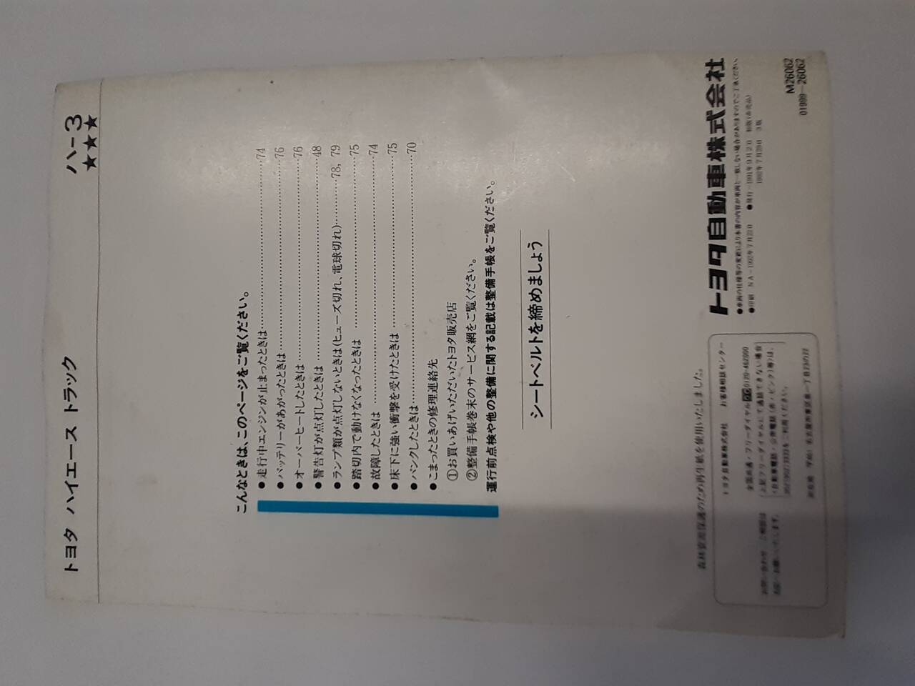トヨタ HIACE TRUCK 取扱説明書(中古)