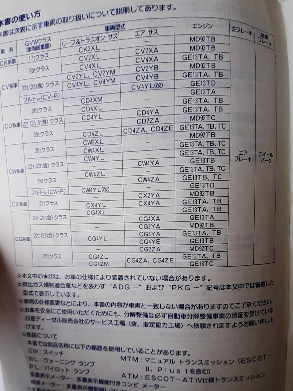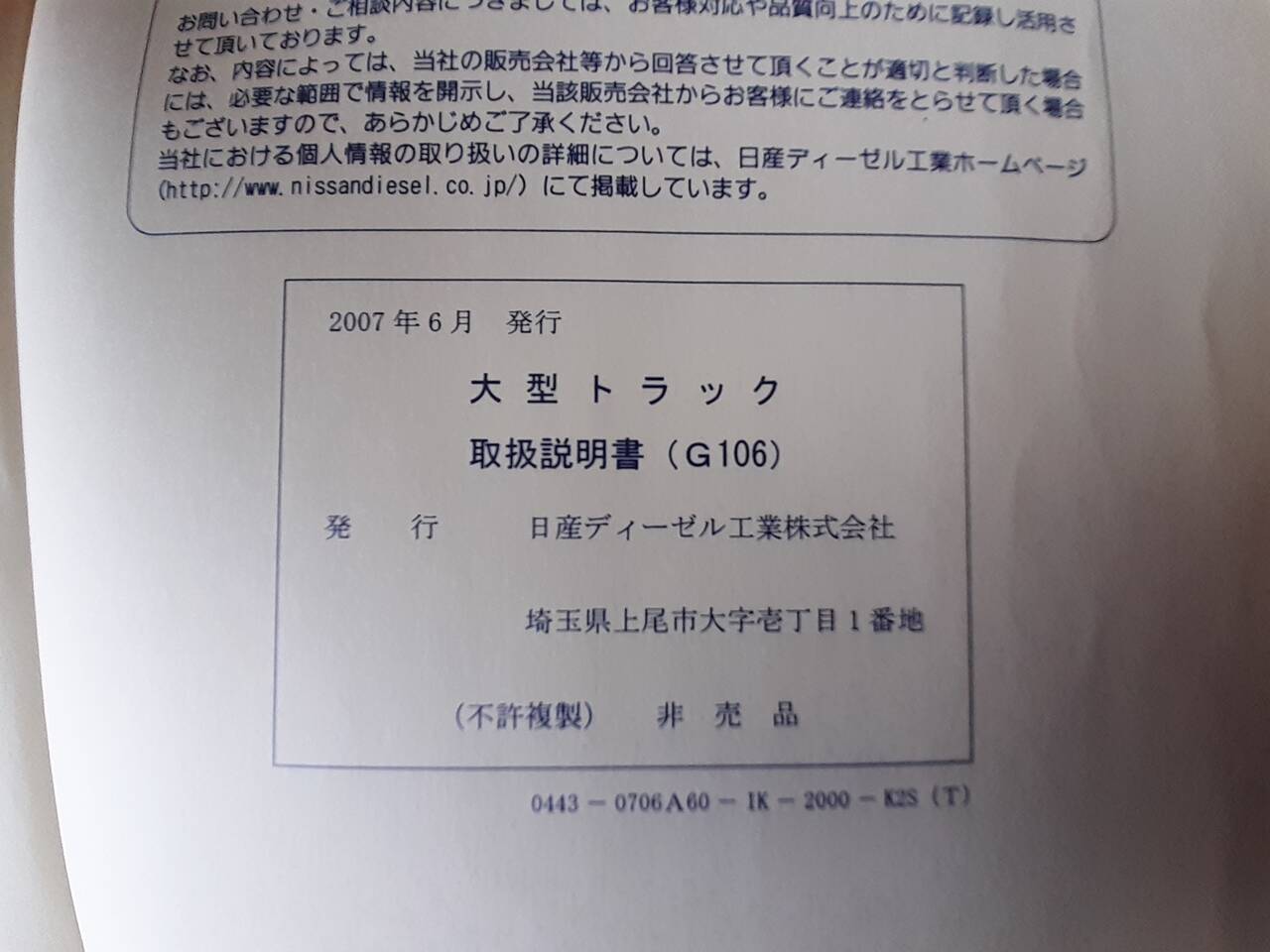 日産ディーゼル QUON 取扱説明書(中古)