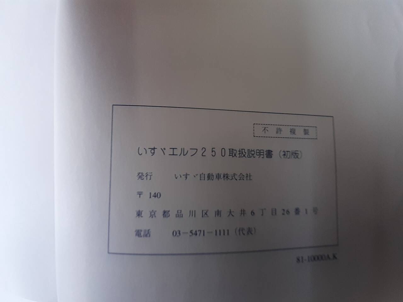 いすゞ エルフ250 取扱説明書(中古)
