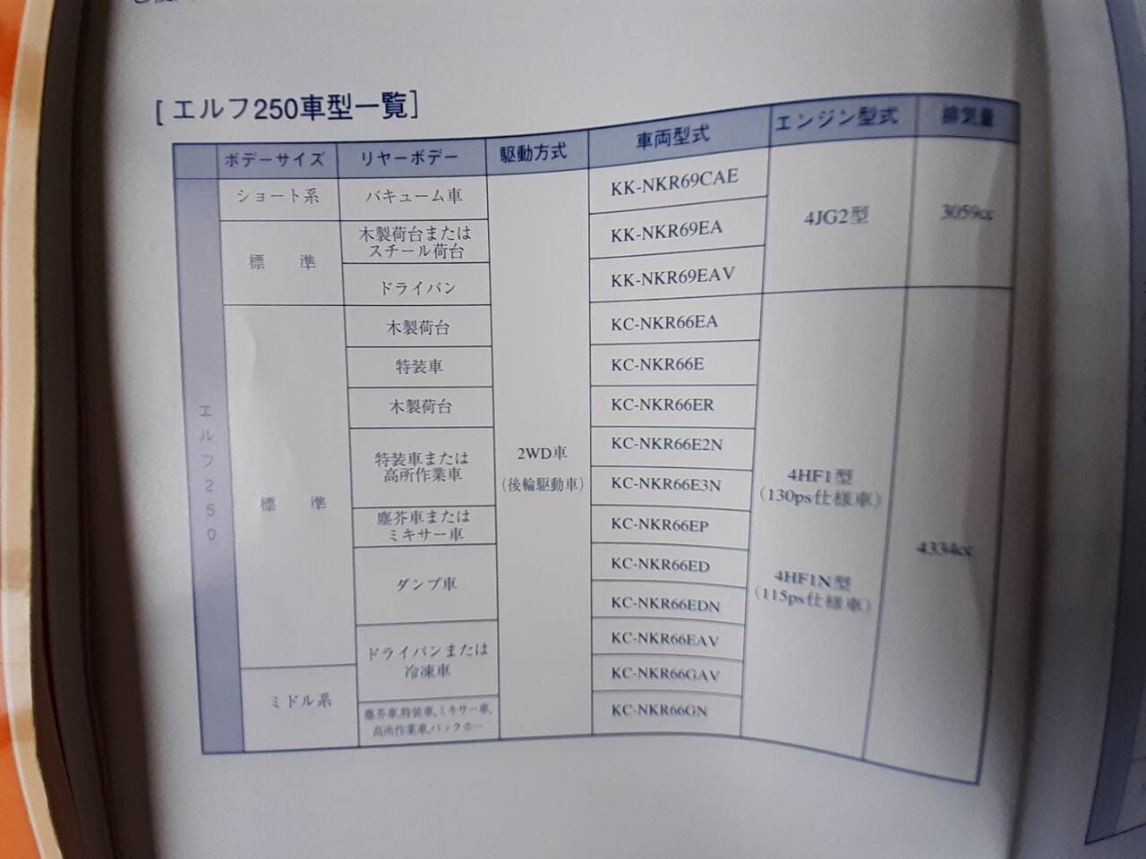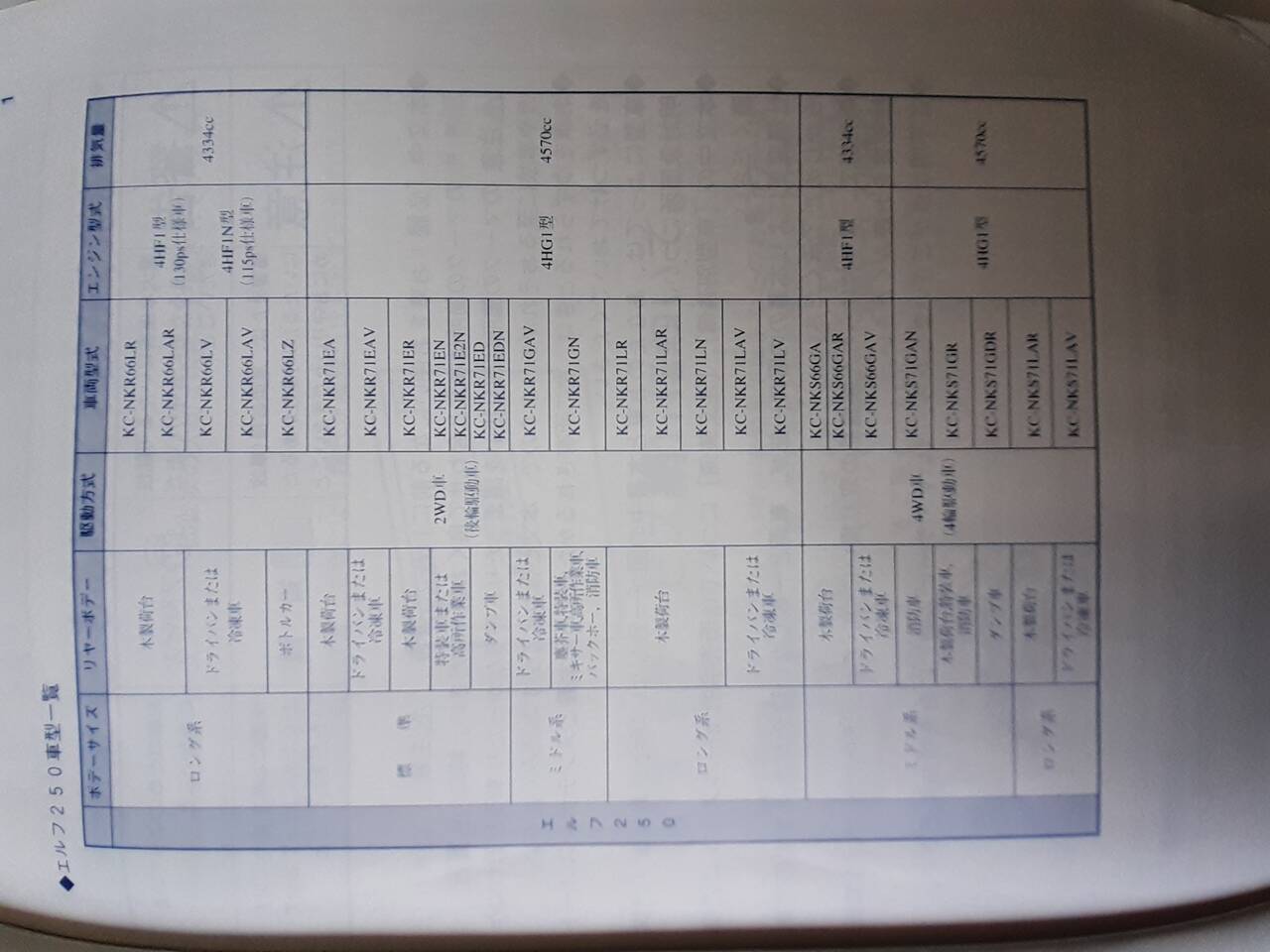 いすゞ エルフ250 取扱説明書