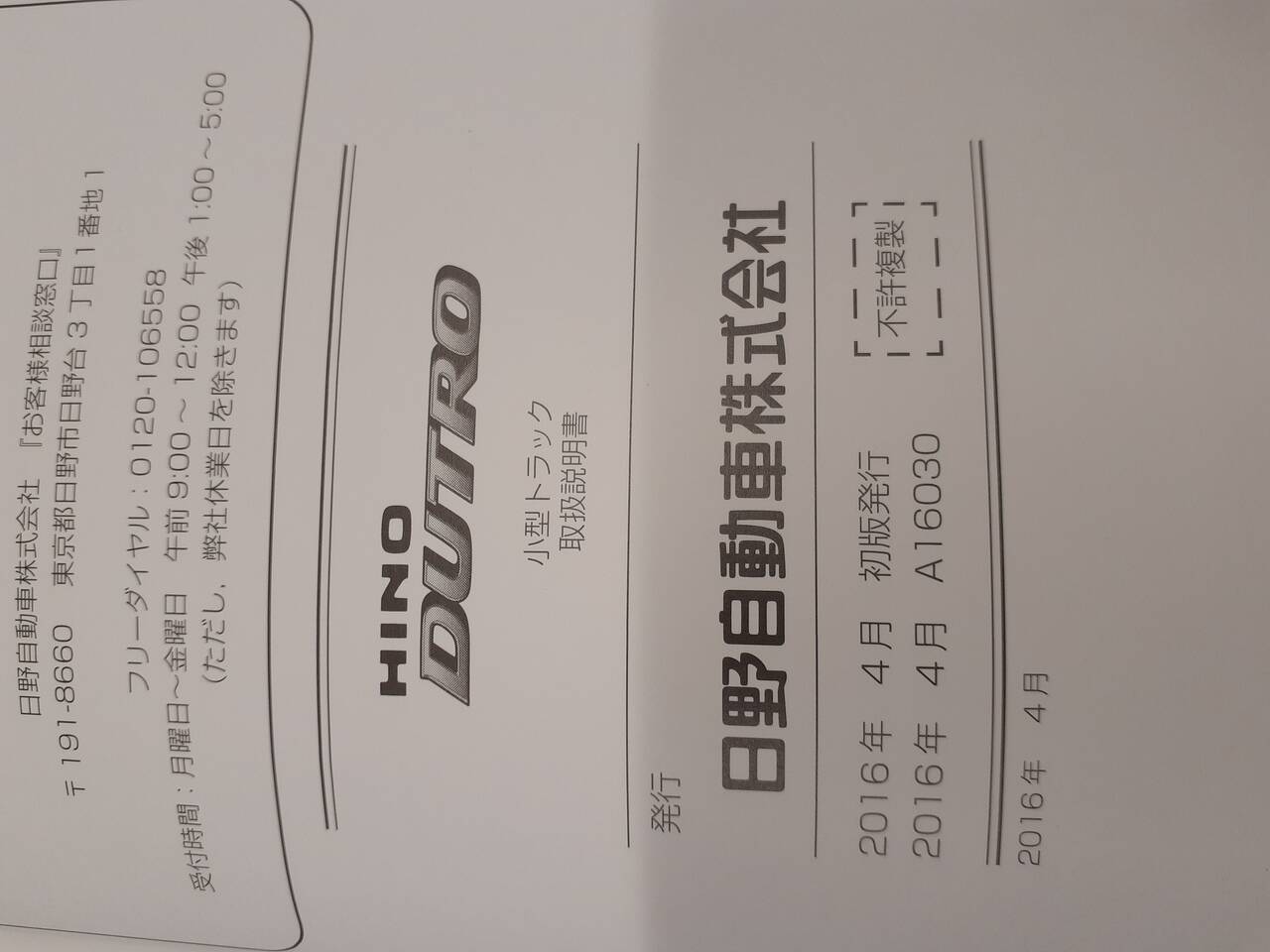 日野 デュトロ 取扱説明書(中古)
