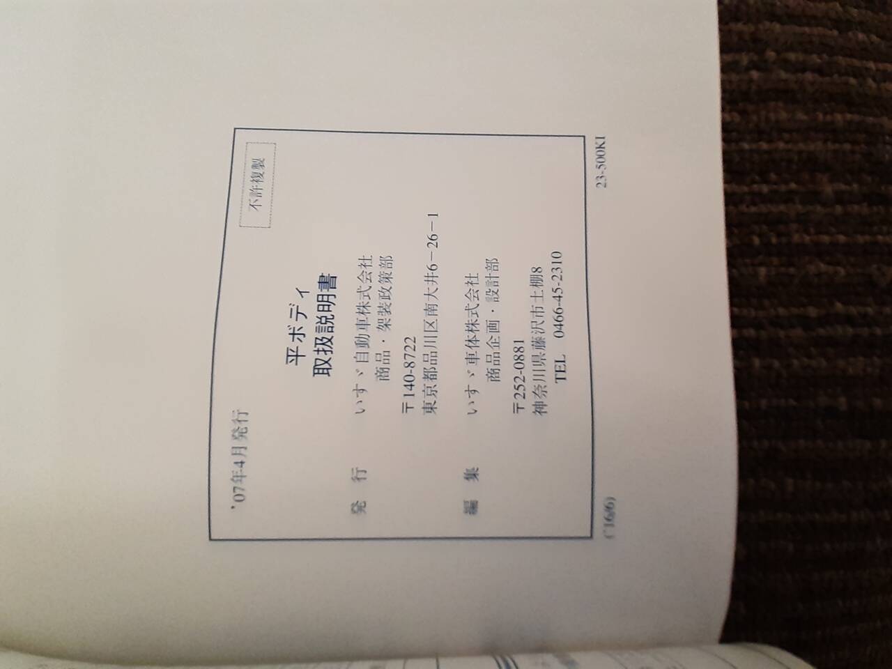 いすゞ 平ボディ 取扱説明書 (中古)