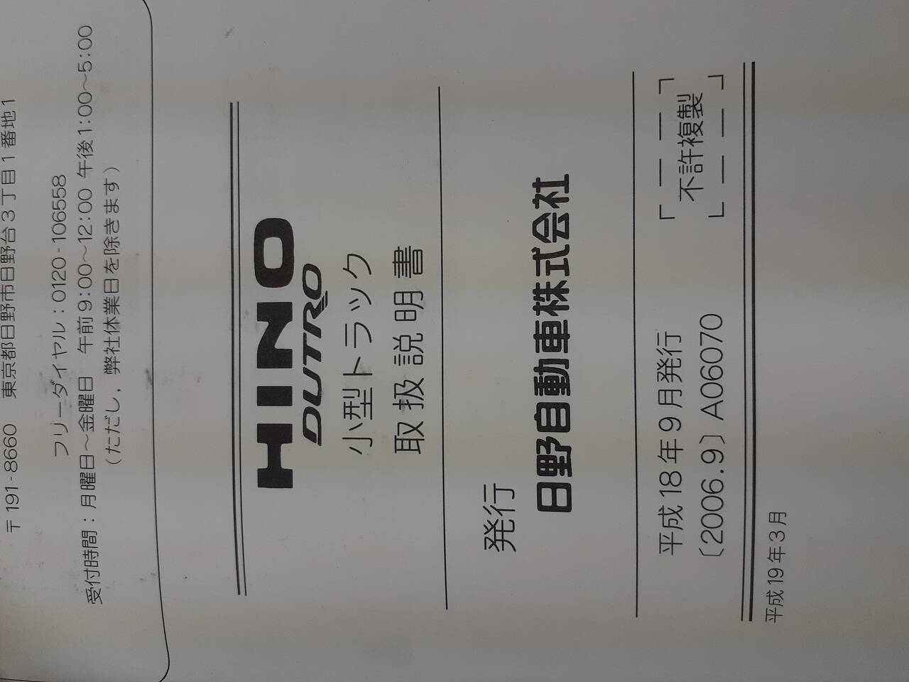 日野自動車 デュトロ 取扱説明書 (中古)