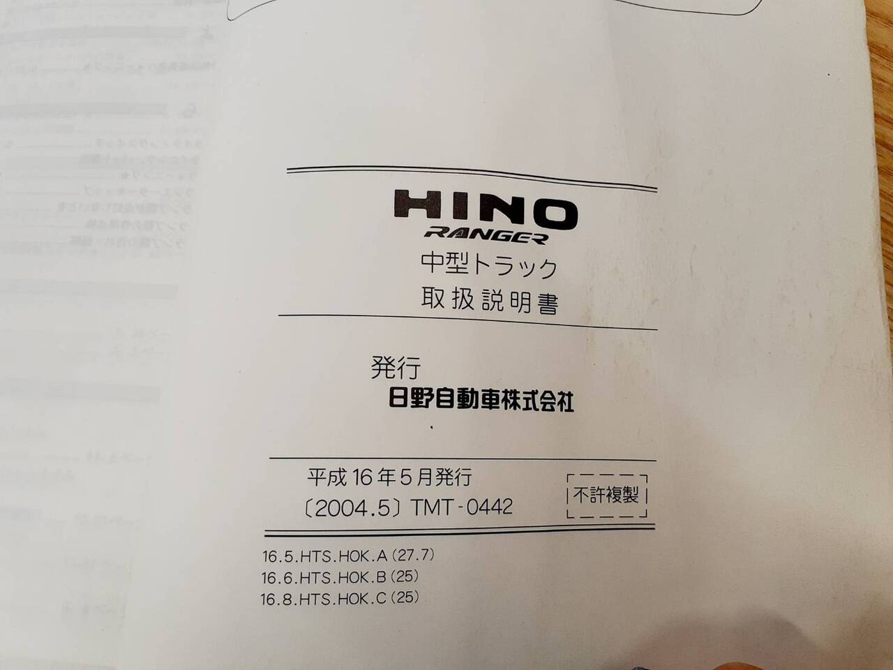日野自動車 レンジャー取扱説明書