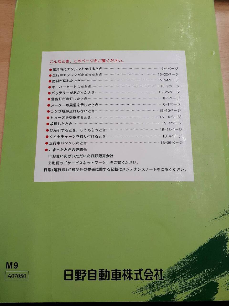日野 レンジャー 取扱説明書(中古)