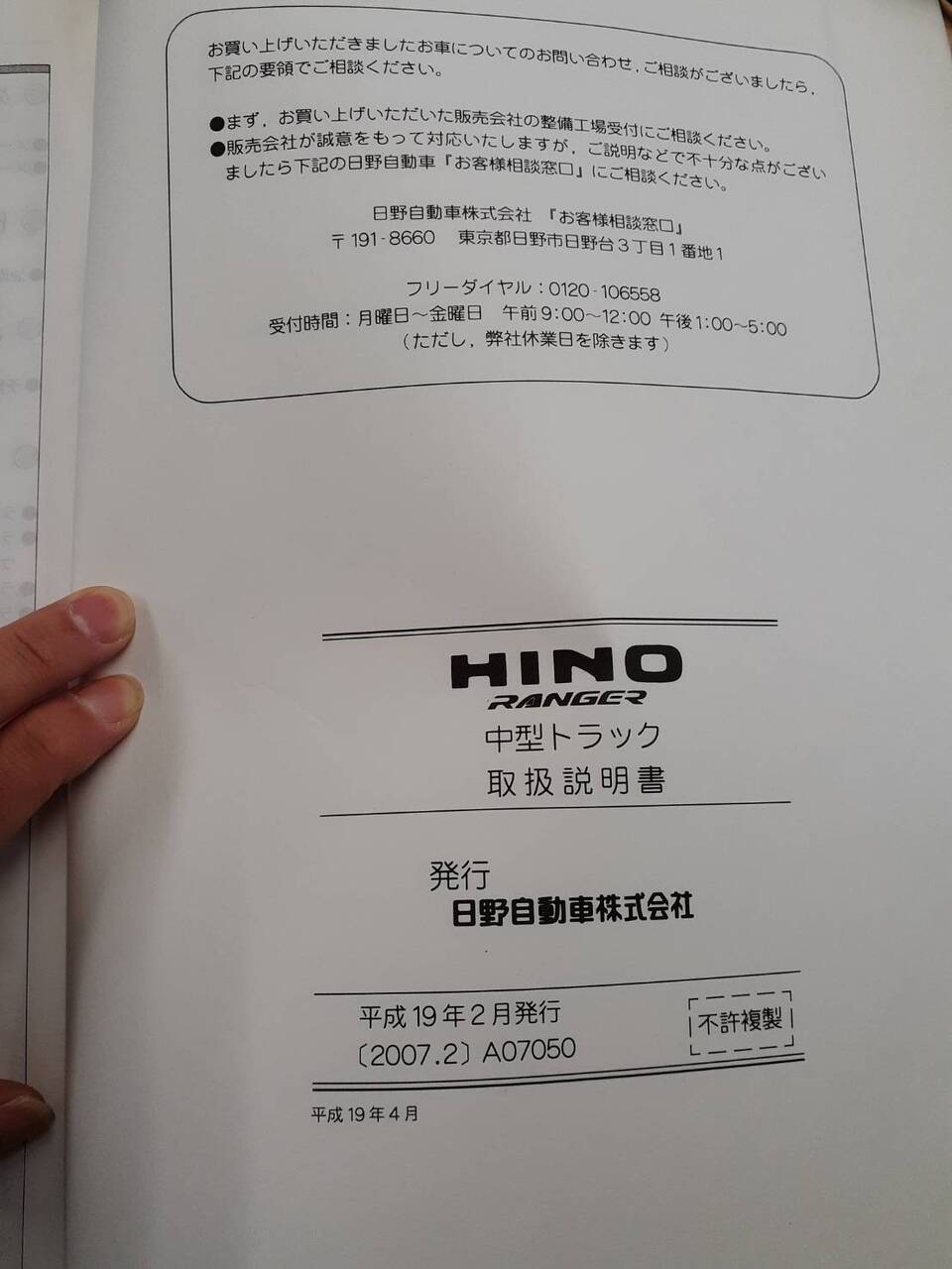 日野 レンジャー 取扱説明書