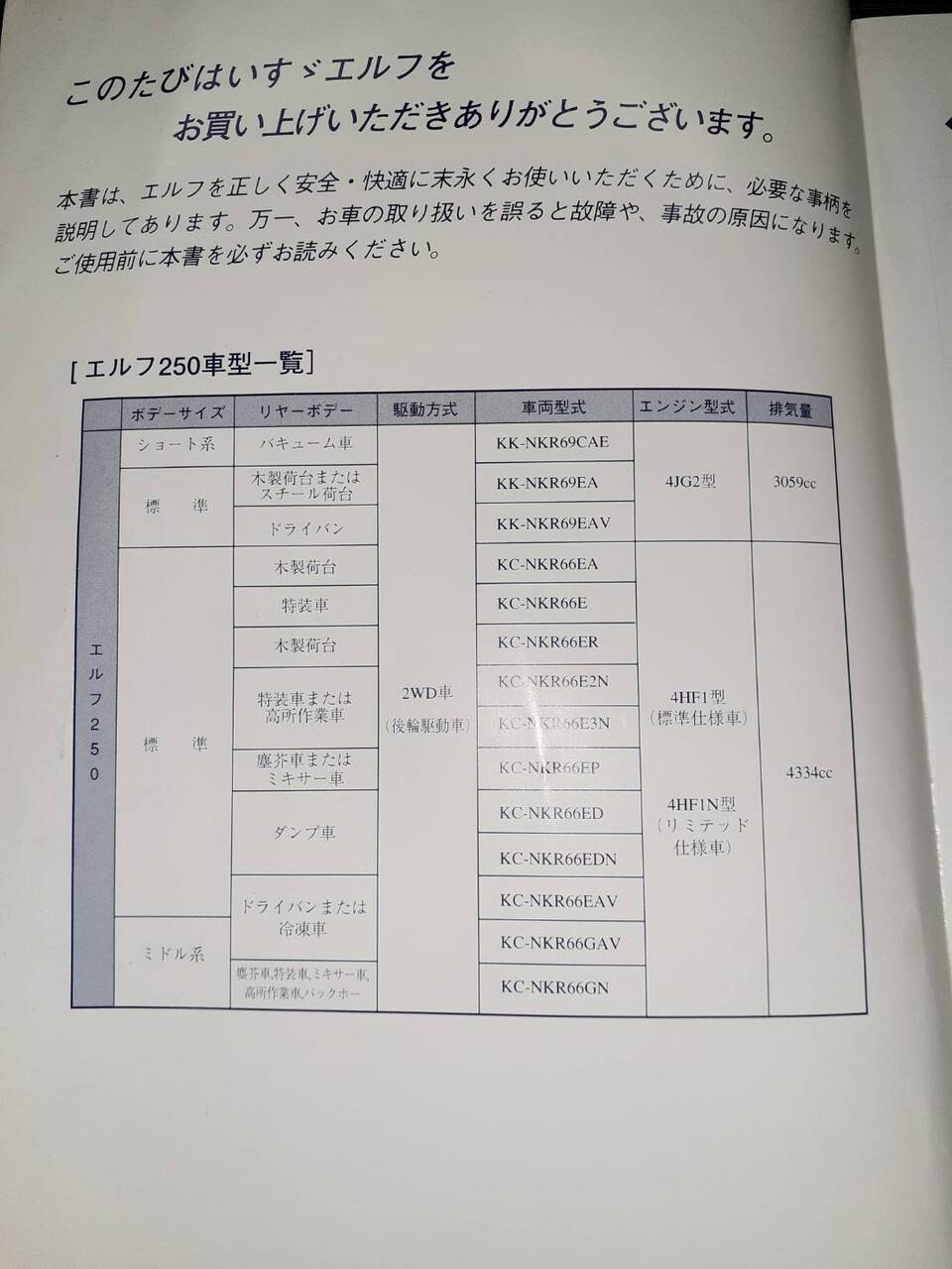ISUZU ELF250取扱説明書(4版)