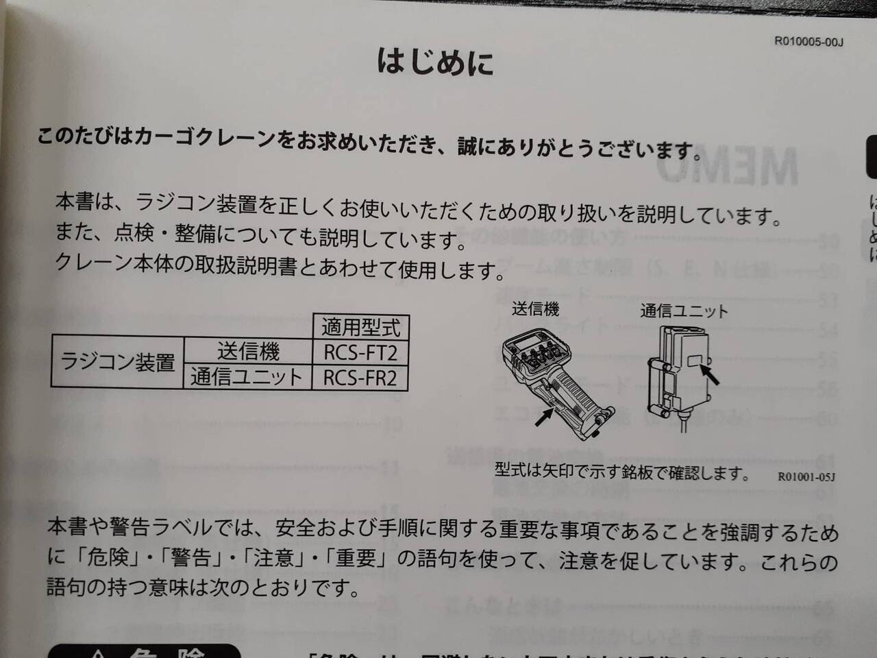 タダノ カーゴクレーンラジコン 装置取扱説明書 (中古)