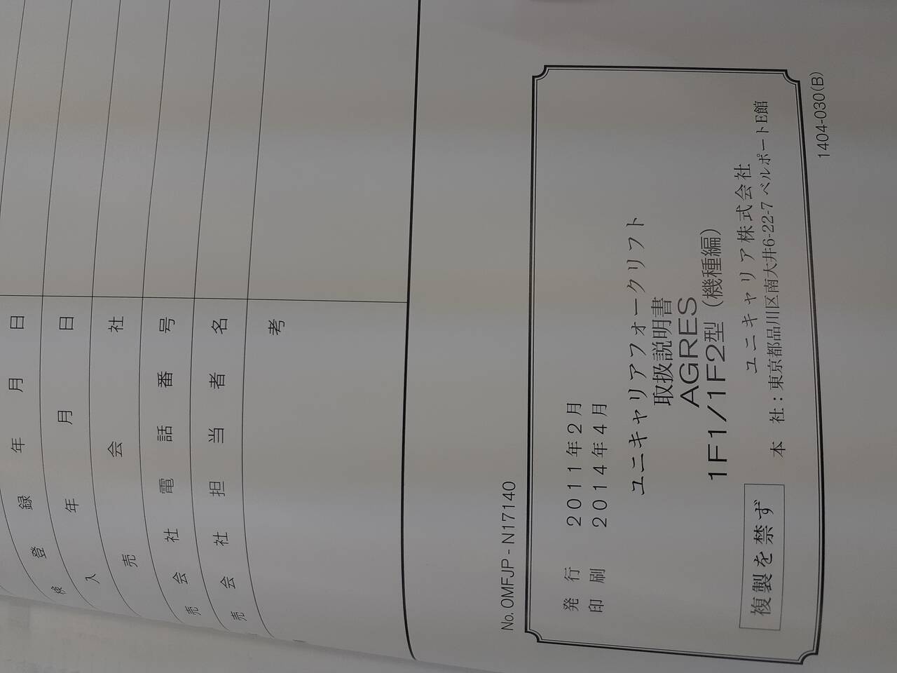 ユニキャリア フォークリフト 取扱説明書(中古)