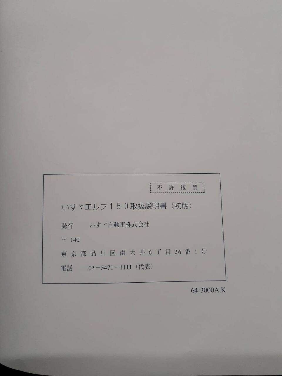 ISUZU ELF 150取扱説明書(初版)