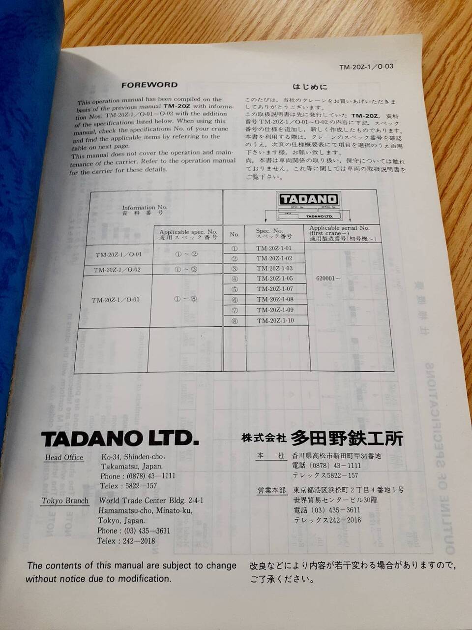 タダノ クレーン 取扱説明書(中古)