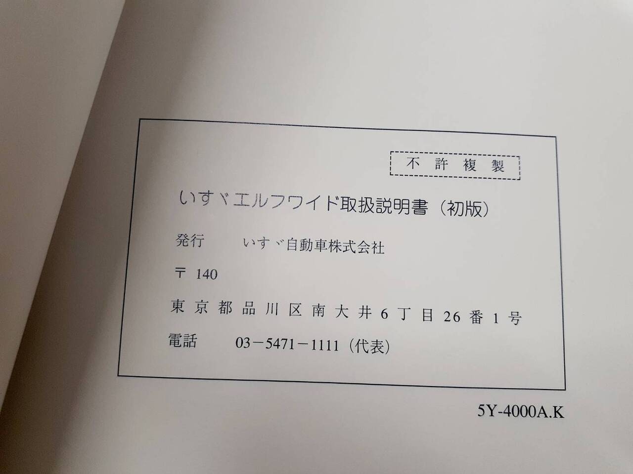 いすゞ エルフ 取扱説明書(中古)