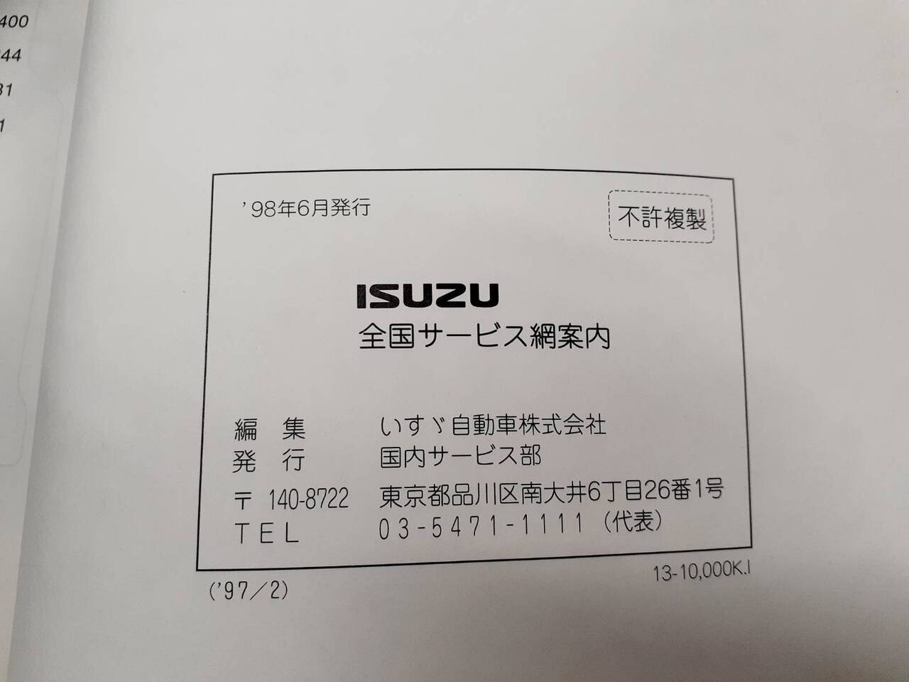 いすゞ 全国サービス網案内(中古)