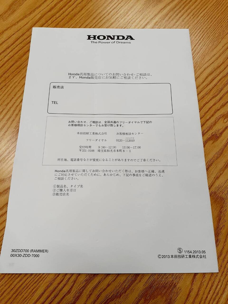 ホンダ エンジン GX100 取扱説明書(中古)