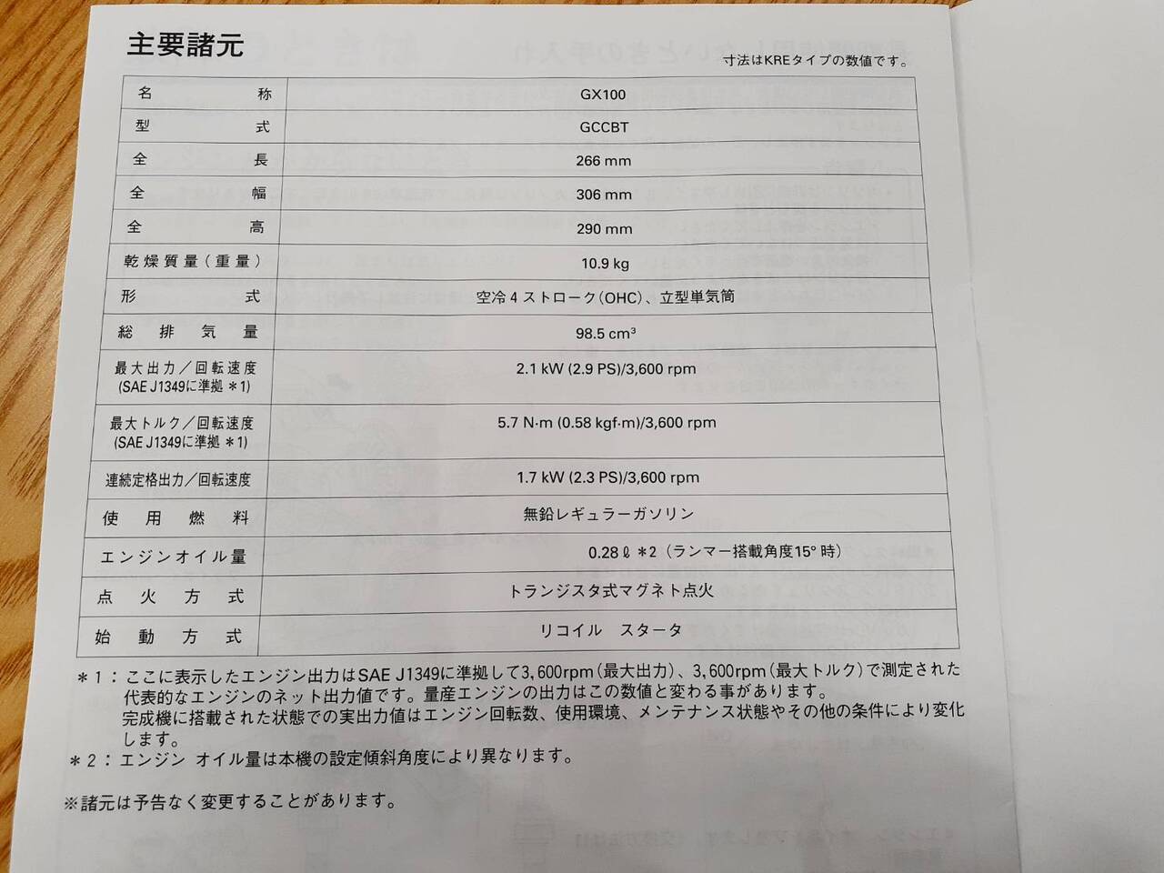 エンジン GX100