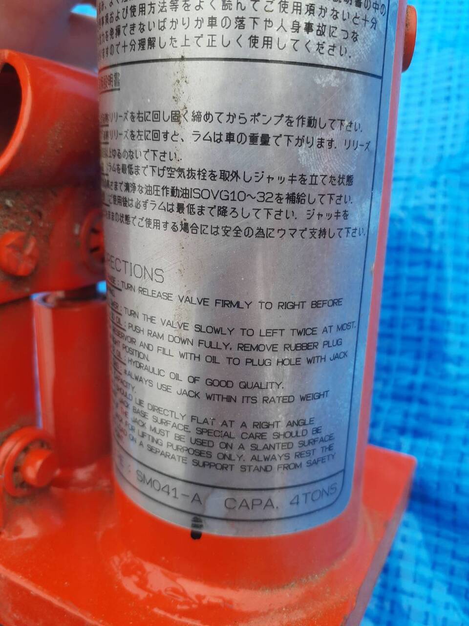 状態は写真で、確認をお願い致します。油圧ジャッキ SMO41-A 4トン 車載工具3点セット