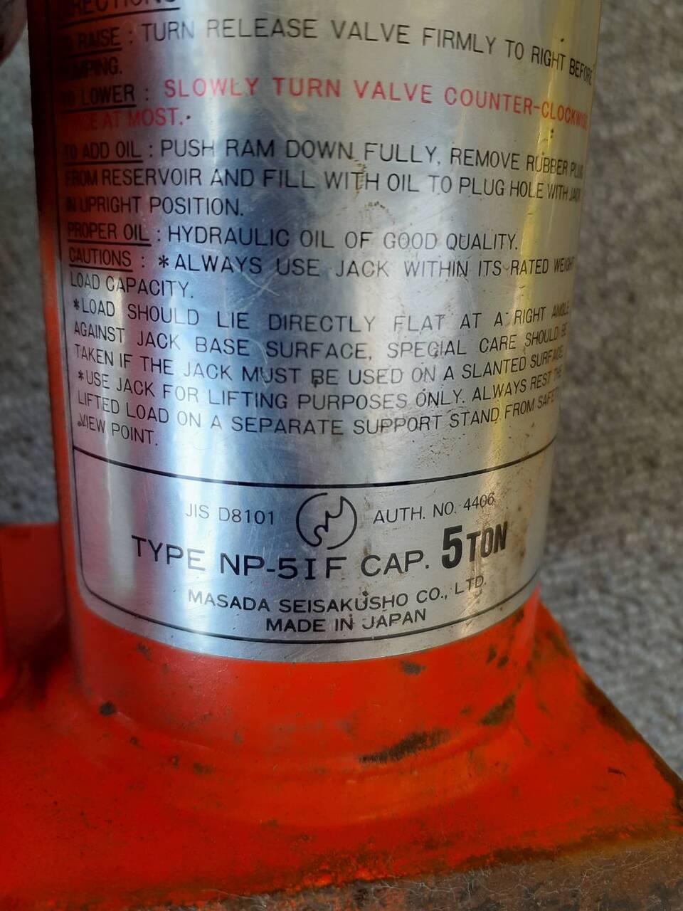 油圧ジャッキ NP-51F 5トン 車載工具セット 中古
