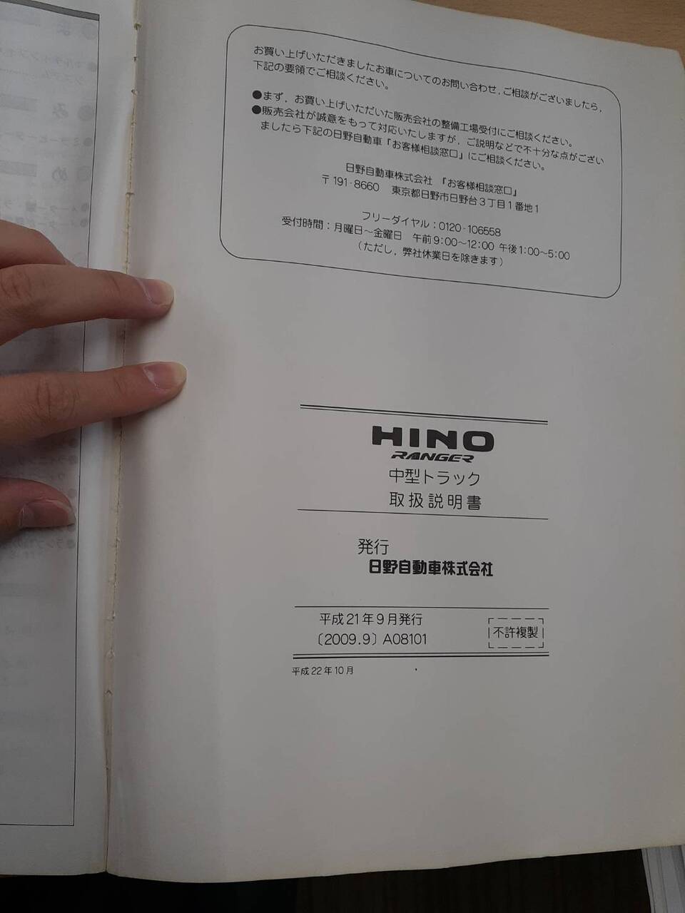 日野 レンジャー 取扱説明書(中古)