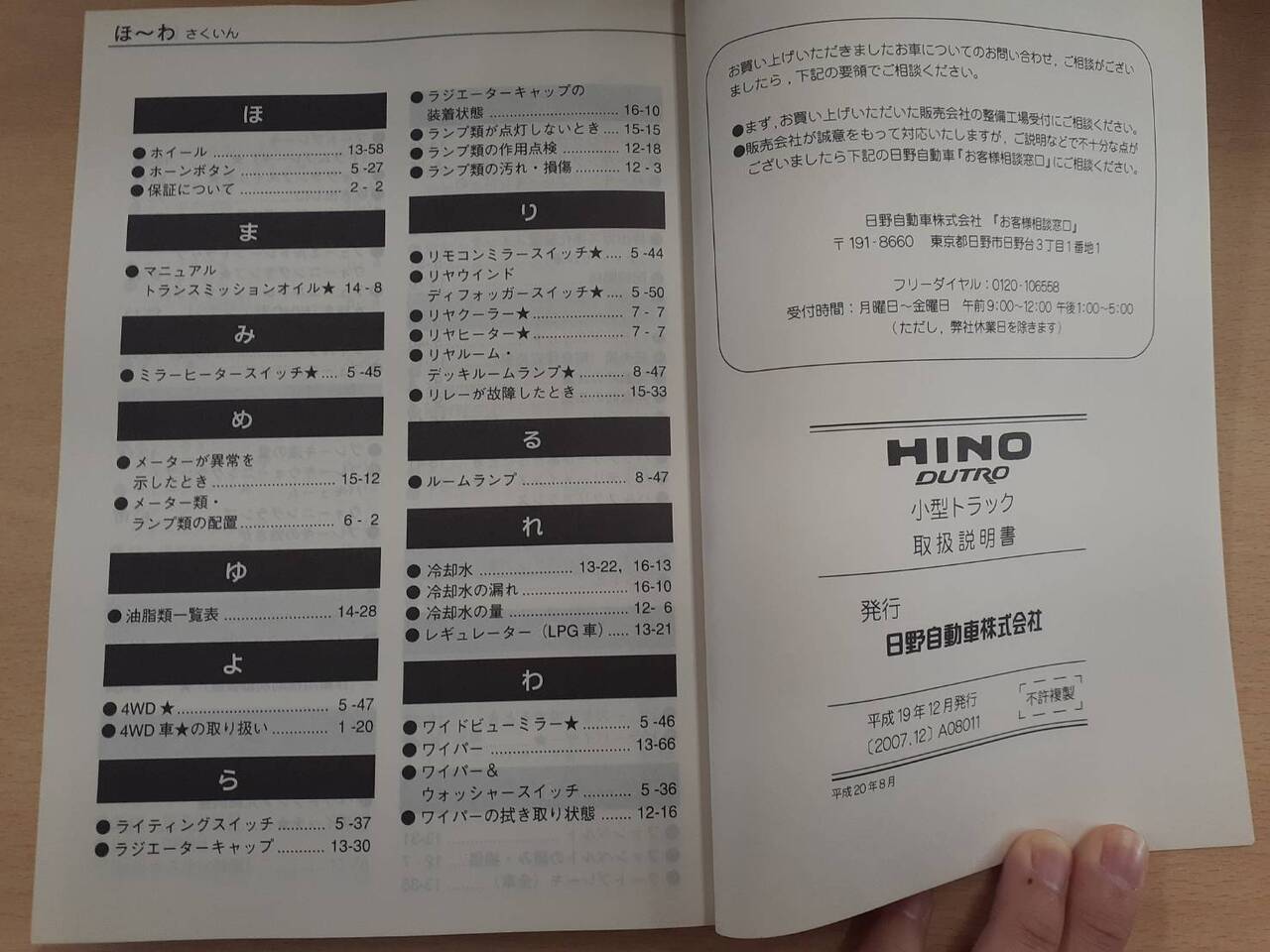日野 デュトロ 取扱説明書(中古)