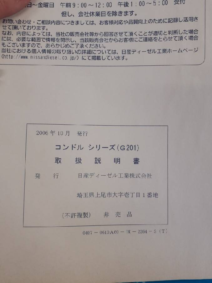 日産ディーゼル コンドル 中・普通型トラック 取説