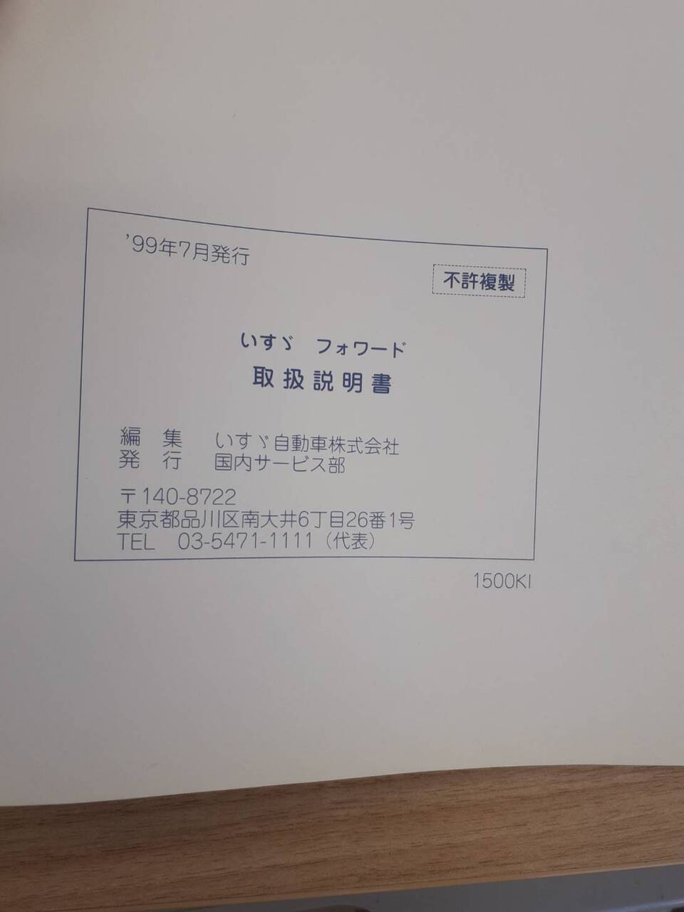 いすゞ フォワード 取扱説明書 1999年7月発行
