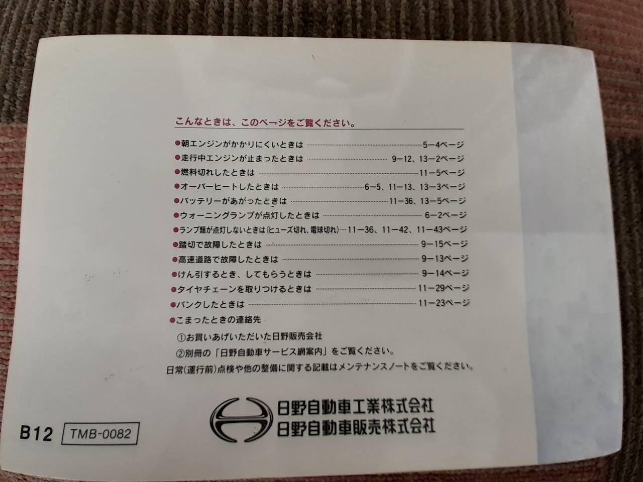 日野 レインボーバス 取扱説明書(中古)