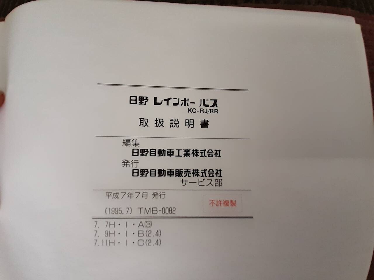 日野 レインボーバス 取扱説明書
