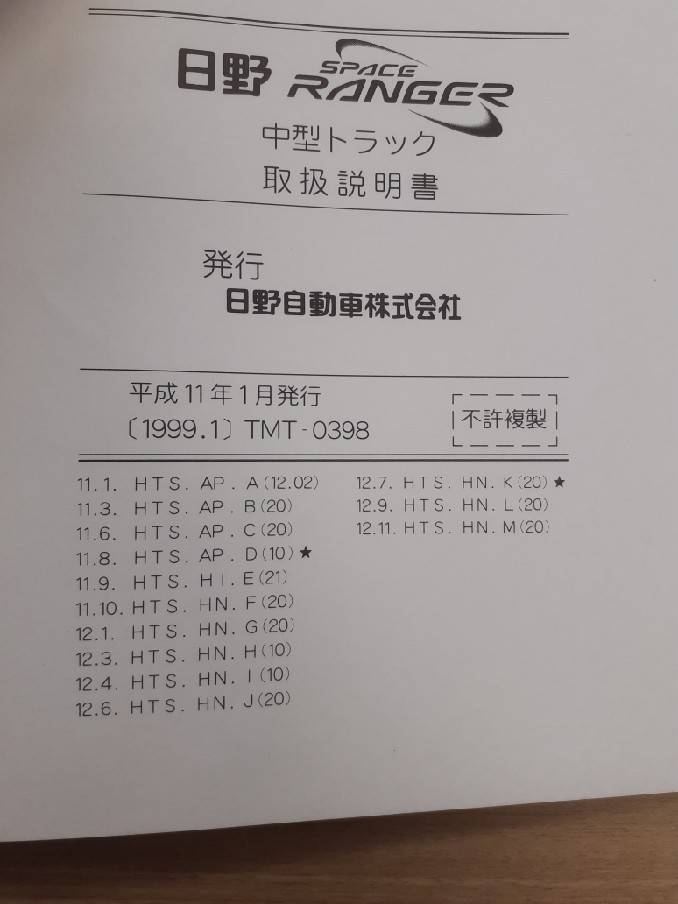 日野 スペース レンジャー 取説 発行年月/1999年1月