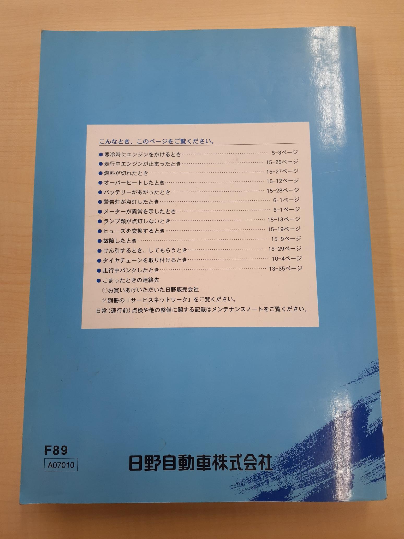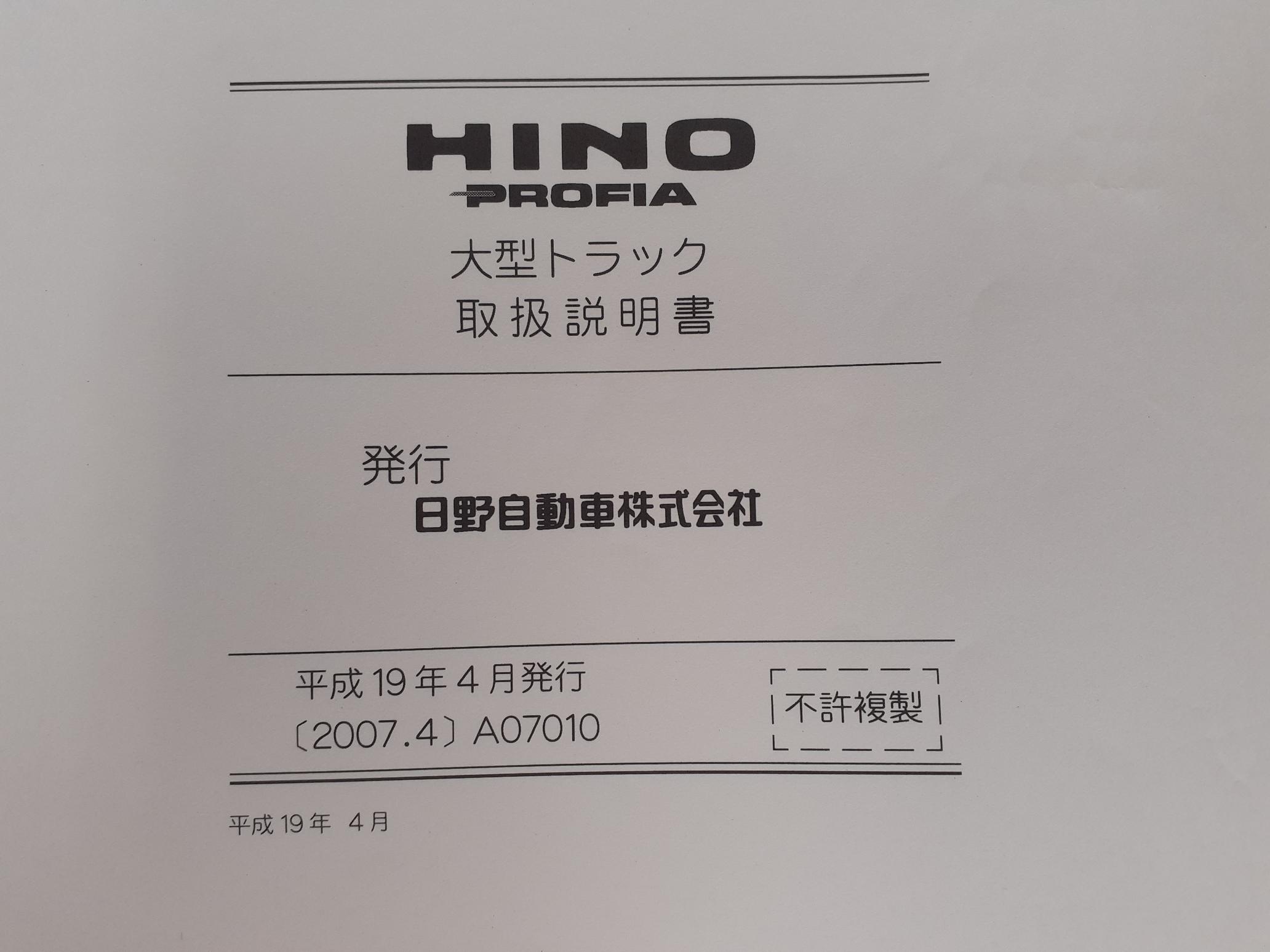日野 プロフィア A07010 取扱説明書です。